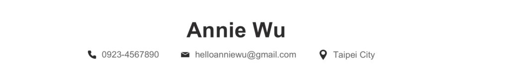 英文履歷最上方會先放上你的基本聯絡資訊,包括 全名、Email、電話號碼和所在城市,這部分 HR 可以聯絡到你。